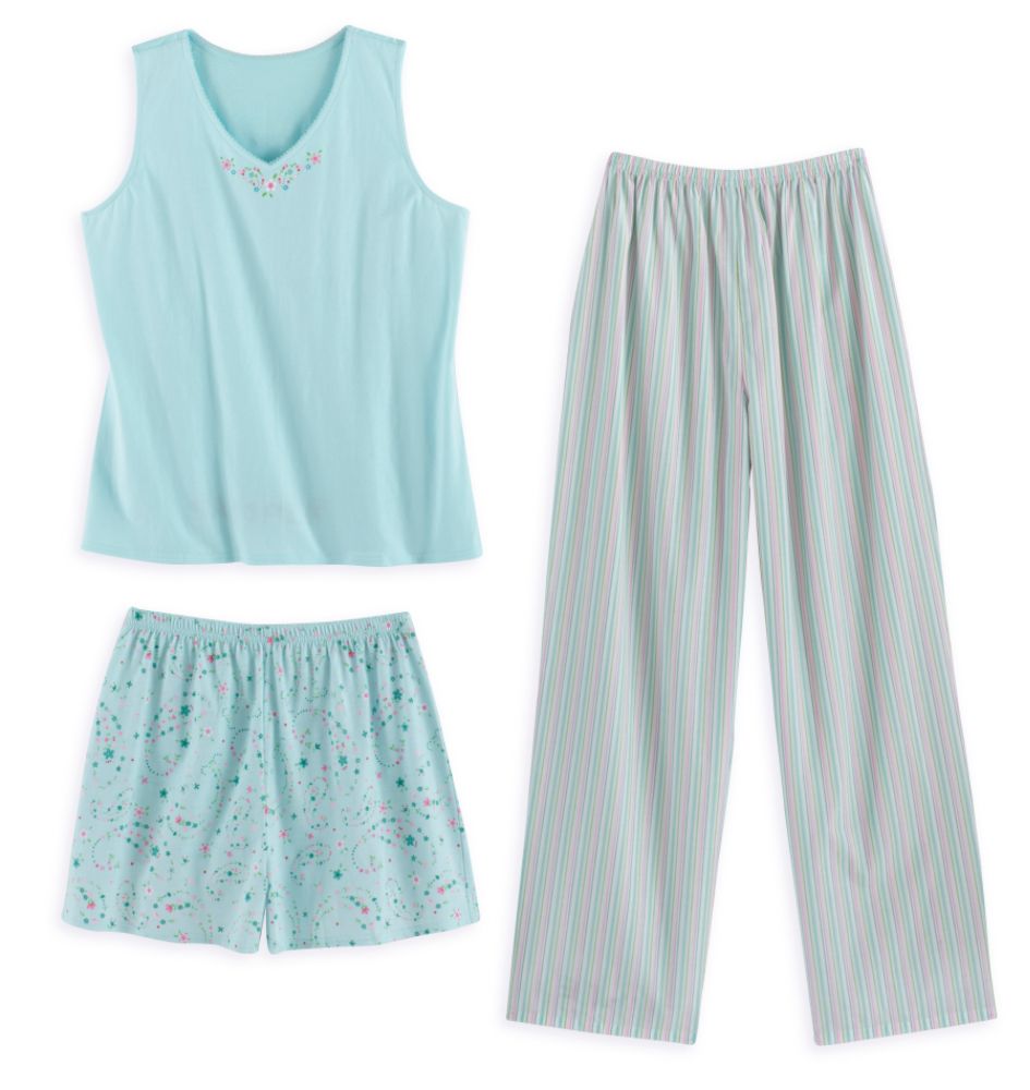 First of all, unless you are a super-skinny model type, most of the styles of clothing today are out. Our first stop was Meijer and neither of the 2 racks of nightwear had anything close to what I was looking for. Then we headed to Target. Lots of options - if you are a super-skinny, model type. I couldn't believe the skimpy shorts and baby doll t-shirts that were pretty much everything they had. Ok, well so maybe 10 years ago I MIGHT have fit into something like that. Not after 3 kids however. I just wanted something comfortable.