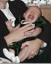 Scrunched up, mad baby eyes while wailing for me to pick her up and feed her...